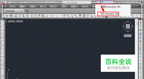 注册和登录方式有两种,一种是去chrome浏览器中输入“Autodesk 360”点击搜索,然后进入相关页面注册;另一个是登录CAD2014,去里面去点击注册。这里讲第一个的方式,打开AutoCAD2014,在菜单栏的右上角处点击“登录”。弹出“关于Autodesk 360”,点击“关于Autodesk 360”。