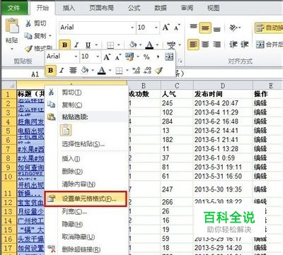 选择全文或者某一列,然后单击右键》选择设置单元格格式