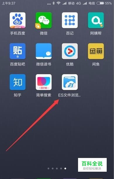 首先在手机上下载并安装好Es文件浏览器,点击应用图标后就可以打开Es文件浏览器了。