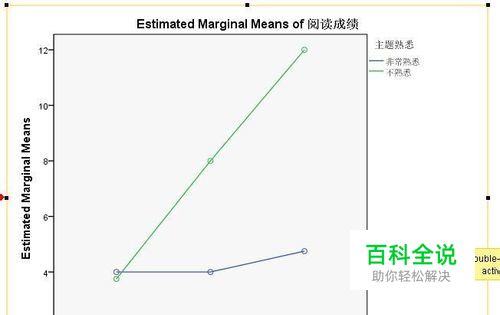 如图所示,这就是输出的线形图了,很明显这个图证明两个自变量之间存在交互作用。当然要想得到确切的结果还得看输出的交互作用sig值