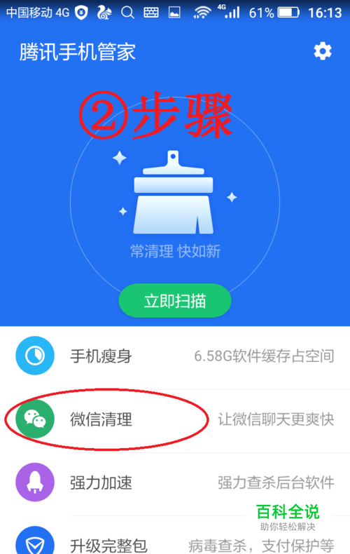 删除几个应用,腾出一点空间来去官网下载腾讯手机管家,下载安装后, 打开手机管家