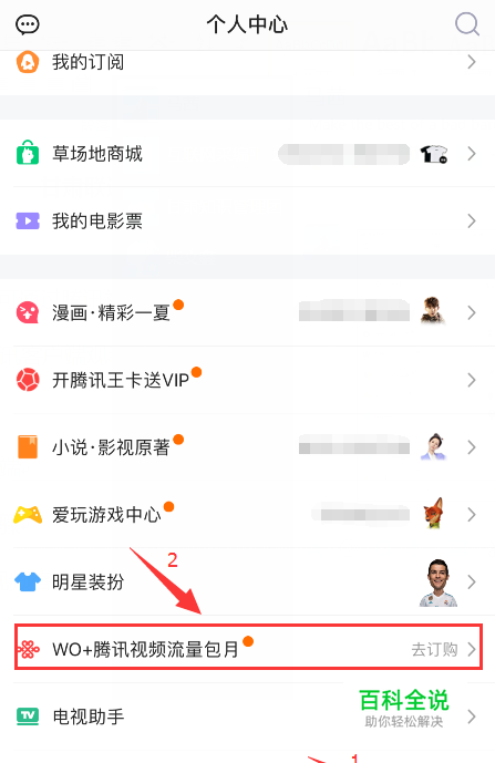 1.打开腾讯视频客户端,选择“个人中心”>>“WO+腾讯视频流量包月”;