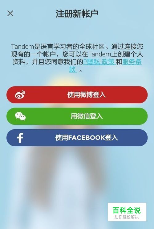 应用市场中下载tandem软件(或浏览器搜索下载),点击“注册账户”