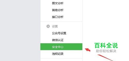 进入公众平台,打开“设置”中的“安全中心”。