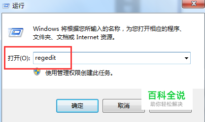 在“运行”对话框中输入“regedit”,打开“注册表编辑器”;