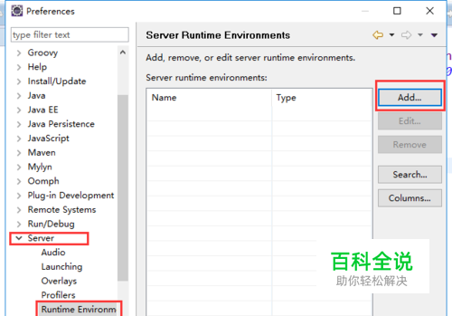 server--->Runtime Environm 点击 右侧的 “add”