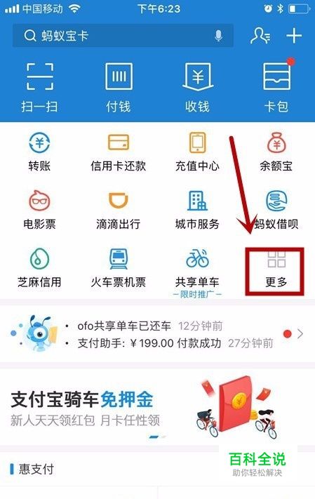 更多界面里,找到小黄车OFO的图标,点击,如图所示