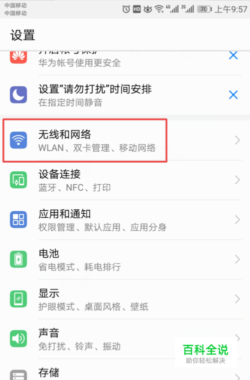 进入设置后,我们点击无线和网络;