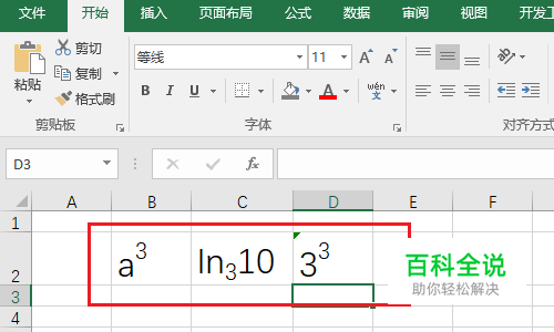 然后在选中第二个“3”,右键设置单元格格式为“上标”。下标也可以用同样的方法设置哦。