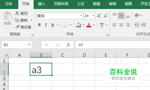 首先Excel中输入a3(3为上标)。
