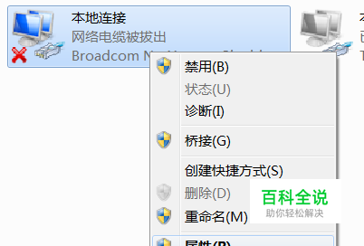 以Windows7为例,打开“网络与共享中心”——“更改适配器设置”。在本地连接(PPPoE没尝试过,因为我是公司电脑出现这种问题的)上,右击选择“属性”,进入属性设置页。