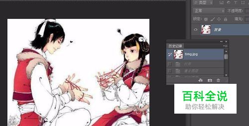 打开软件,在软件中打开一张你下载好的图片素材,这里,我以一张古风素材图为例子,顺便调出历史记录面板。