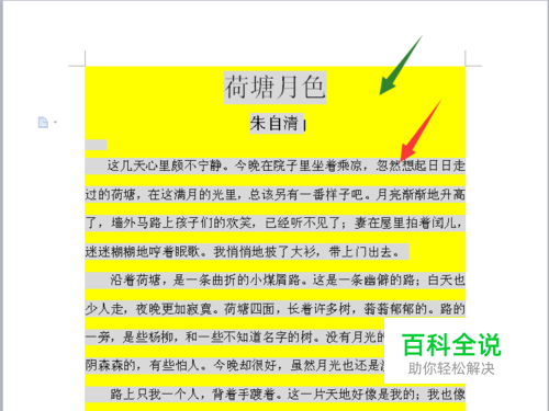 首先,利用鼠标把文档内容全部选定。(或者使用快捷键Ctrl+A选定全文)。