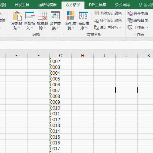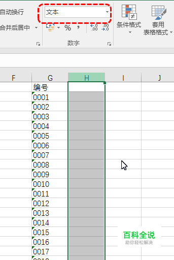 预先选择一列将单元格格式设置为文本以便存储抽取的编号。