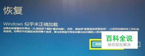 长按“电源键”以关闭计算机,再按“电源”键重启开机,此时将直接进入如图所示的“恢复”界面,点击“查看高级修复选项”按钮。