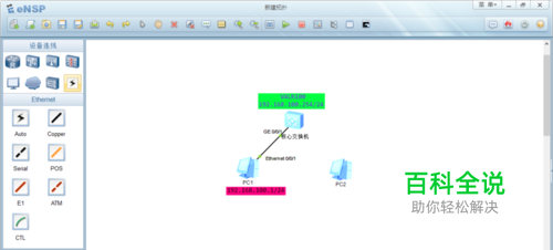 打开模拟器,创建一台交换机和两台PC、开机,配置好IP地址,一台PC备用。