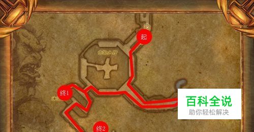 从上图终点1进入副本后就可以开始副本,副本错综复杂,下面介绍的路线是常规的打完所有Boss完成副本的路线。 进入副本后沿着下图红线走会有一个分岔,但是无论走那条路最后都会在下一层的宿舍汇合。