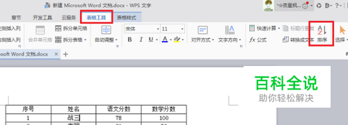 第二步点击表格,进去表格编辑状态,选中要排序的内容,点击表格工具->排序,如下图所示: