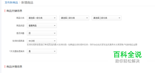 点击发布新商品—创建商品。填好商品的分类和类型。和拟好标题。