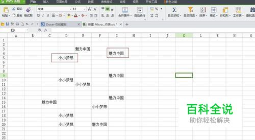 打开excle,如下图:只有小小梦想,美丽中国“两个字样