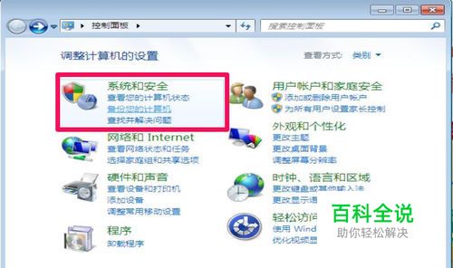 第一步:先从开始菜单打开控制面板,然后在控制面板中,找到并打开“系统和安全”这一项。