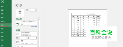 打开Excel表格,依次点击“文件”→“打印”,调出打印页面设置。以下图为例,可以发现,若直接打印表格,将打印成2页