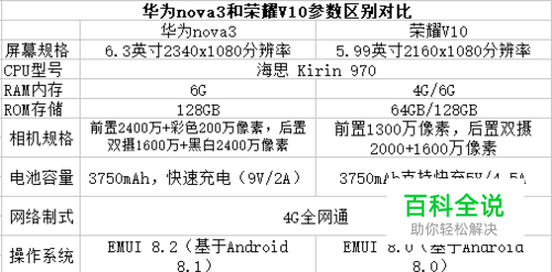 硬件配置 华为 nova 3和荣耀V10都搭载去年 9 月华为发布的旗舰级芯片麒麟 970,这是一枚八核设计的芯片(4×Cortex A73 2.36GHz+4×Cortex A53 1.8GHz),集成 Mali-G72 MP12 GPU,并内置有专用 NPU 处理器单元,负责人工智能运算。 华为 nova 3内存和储存标配的是 6GB RAM 和 128GB ROM,支持 microSD 卡扩展,最高可扩展 256GB。 荣耀V10存储为4/6GB+64GB/128GB组合