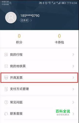 在个人中心界面,点击开具发票。