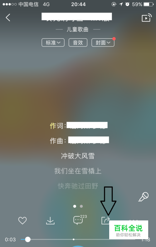 在酷狗音乐听歌界面,点击【分享】按钮