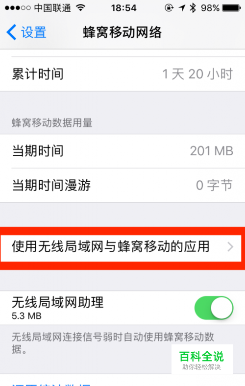点击”使用无线局域网与蜂窝数据“;