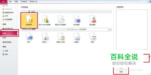 打开access,依次点击“文件-新建-空数据库”;输入文件名,文件存放地址, 点击“新建”图标