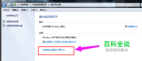 第二步,在接下来的界面中选择恢复系统设置和计算机。如果你的计算机没有开启还原的功能,可能需要开启这个功能