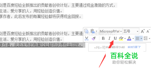 进行选中需要添加下划线文字之后,就会弹出了工具,进行点击下划线。
