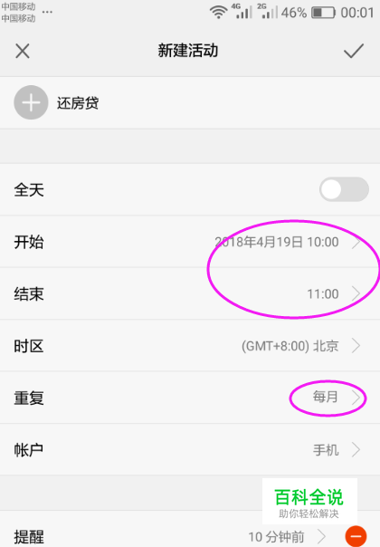 华为手机添加每月还贷提醒的方法