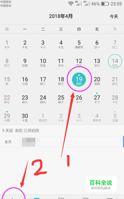 打开手机自带的日历APP,选择还贷日期,然后点击左下角的