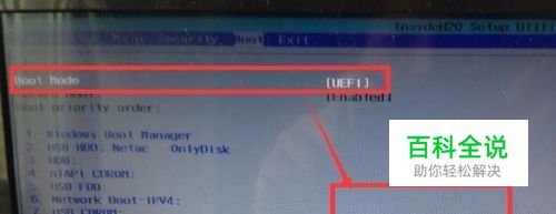 将大白菜uefi版u盘插入电脑,重启,按快捷键进入bios设置界面,将biso设置成uefi启动模式。
