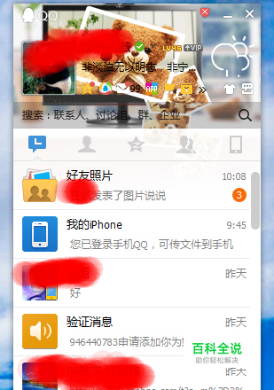方法二:只使用一个QQ,但需要同时在电脑上和手机上登录QQ(可以是离线状态,但一定要在你的手机上登录过此QQ),选择QQ头部导向栏的“手机”图标。