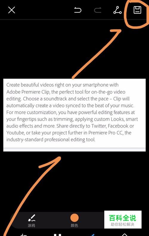 截图后点按编辑,调整截图边框,尽量让长宽与文本内容一致,然后点按界面右上方的保存标志,如下图所示。