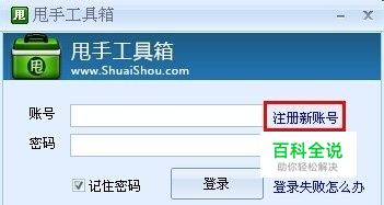 工具安装完成后,点击注册新帐号注册甩手的会员帐号,注册帐号只需要填写您 的常用邮箱,以备忘记密码时找回密码