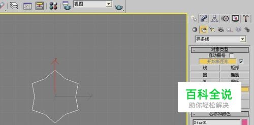 打开3d max软件,鼠标左键单击右边面板的【图形】按钮,选择【星形】,在顶视窗口中拖放出一个六边形出来,并更换颜色为红色,如下图所示。