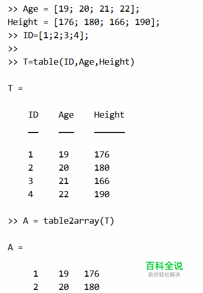介绍在MATLAB中如何将表格转化为普通数组或者元胞数组,涉及函数table2array,table2cell,以及其它有关知识。