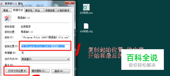 首先右键点击桌面上的易语言快捷方式,选择属性