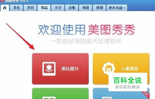 在电脑上打开美图秀秀,然后点击“美化图片”按钮,接着选择我们要编辑的照片。