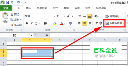 这样,我们就可以看到被选中的单元格同样也被合并成一个单元格了。