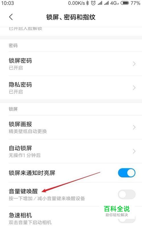 音量键唤醒。在“设置”—“锁屏密码和指纹”中可以设置使用音量键唤醒。
