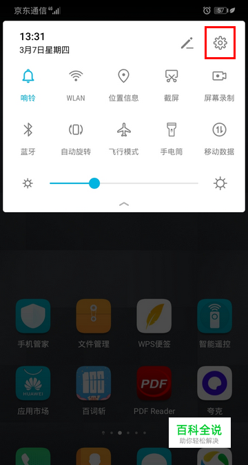 调出通知栏以后,点击右上角的设置图标。