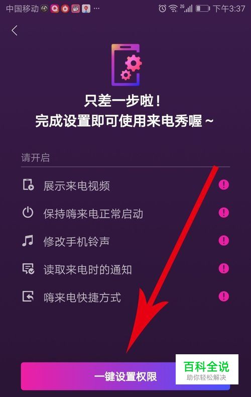 打开新的页面后会看到5个权限设置项,这时点击底部的“一键设置权限”按钮