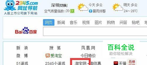 打开2345导航页,点击“淘宝网”。