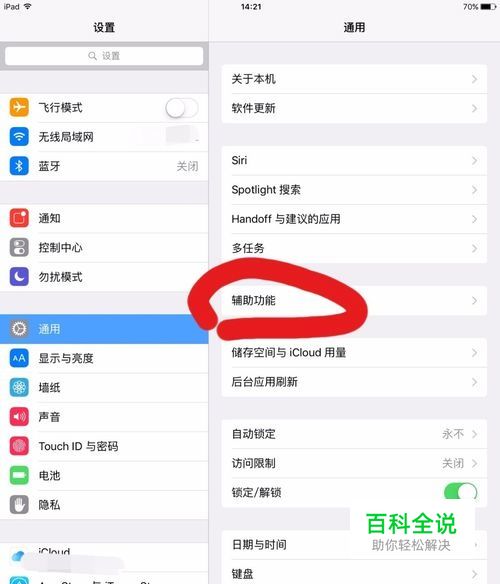 在ipad/iphone上打开“设置”-“通用”-“辅助功能”。(如下图)