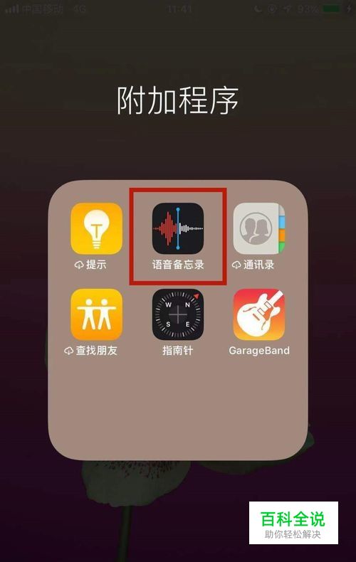 如图所示,首先在我们的手机桌面上找到语音备忘录并点击它。